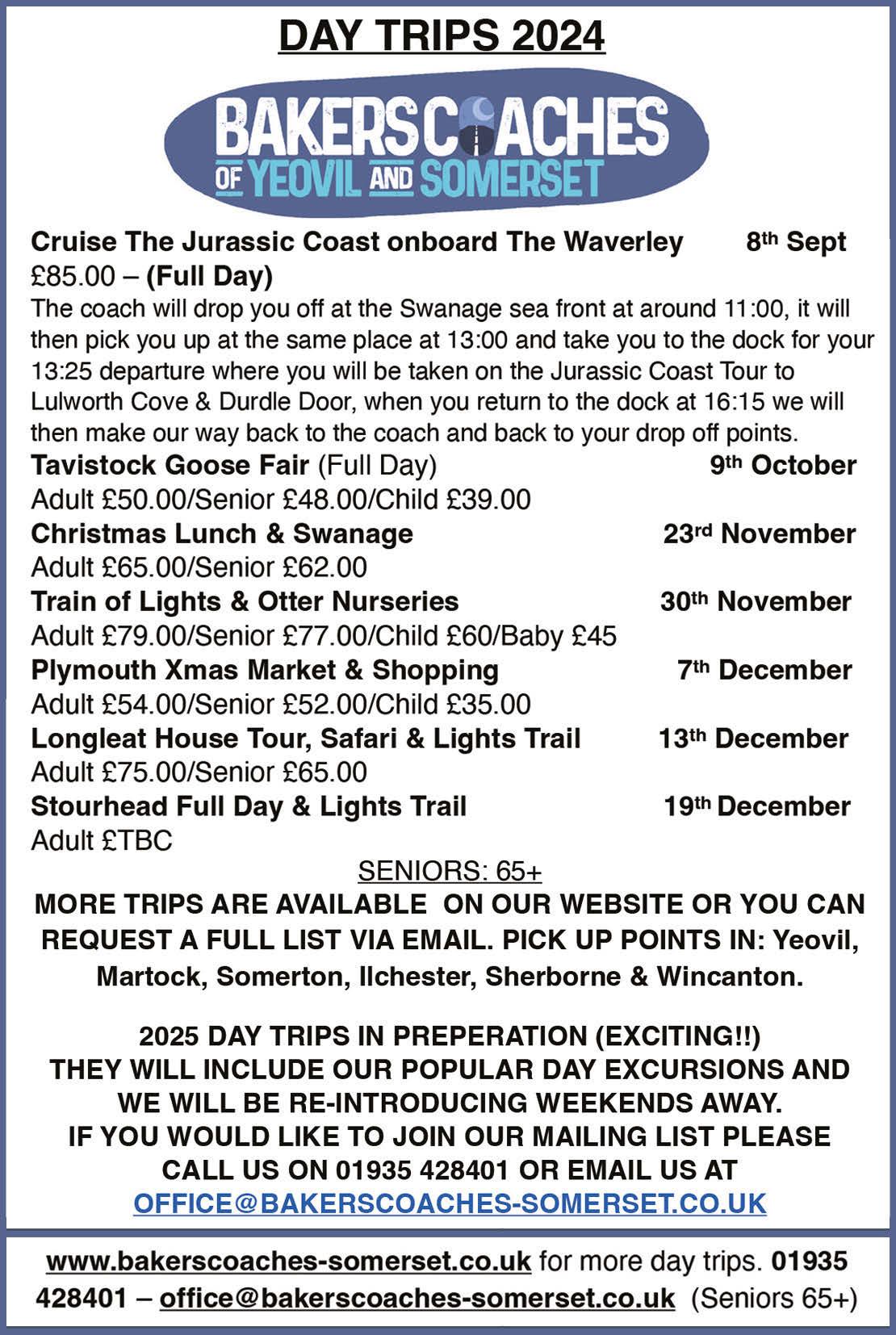 this year go on to the website www.wincantonchoralsociety.co .uk, facebook.com/wincanton choralsociety or telephone Chairman Sally Greenhalgh on 01749 860457. Yes, that’s right, they do have a new Chairman, Alleluhia! Wincanton Choral Society are absolutely delighted that Sally has stepped into her old shoes – she did the job brilliantly from 2008 to 2012.