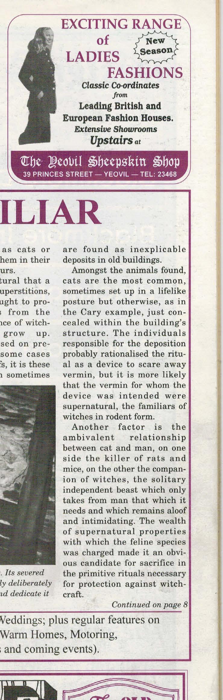 Inn boasted that ‘we are in the Good Beer Guide in recognition of our fine range of traditional ales’. At Upton Noble the Lamb Inn was staging a ‘mouse racing evening’ in aid of multiple sclerosis and was offering ‘authentic Indian curry suppers every Wednesday evening’, while the Pilgrims Rest at Lovington promised ‘traditional pub food’ as well as ‘Indian, Chinese and Pasta’. And the Horse Pond Inn in Castle Cary announced that ‘bookings are now being taken for Christmas Dinners’ – somewhat premature, methinks! Roger Richards.
