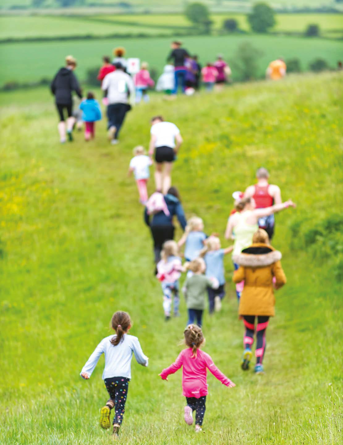 Visitors completing the trail running event at Top of the Gorge Festival, Cheddar Gorge, Somerset. Image: National Trust Images/Paul Harris.