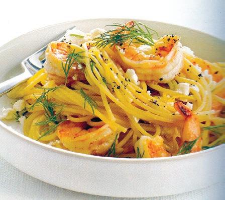 Spaghetti with Shrimp, Feta and Dill Serves 4