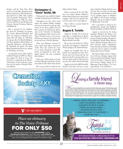 Affiliated with: Scott Funeral Homes, Inc. V O I C E -T R I B U N E . C O M • A U G U S T 2 5 , 2 0 1 6