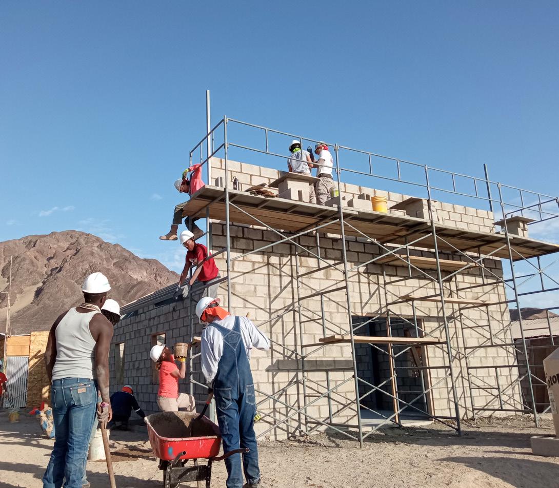 Youth from the West Houston Seventh-day Adventist Church in Texas raised the block walls of the Portachuelo Church.