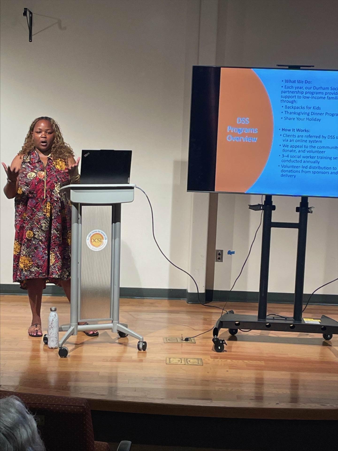 We are still confirming our speak for August so stay tuned It will be Wednesday, August 20 from 12:00 - 1:00pm at the Durham Center for Senior Life in the theater Many thanks to Betty Njaramba from The Triangle Nonprofit & Volunteer Leadership Center who spoke last month about our DSS programs!
