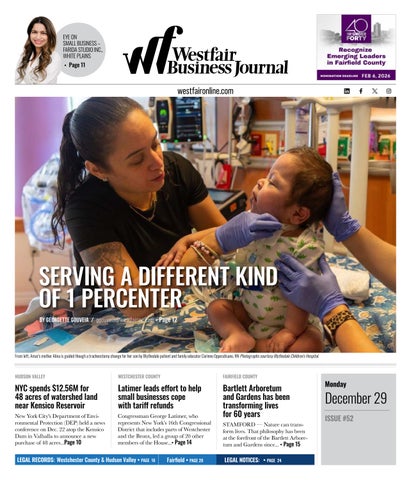 Westchester County Business Journal (USPS# 7100) is published Weekly, 52 times a year by Westfair Communications, Inc., 3 Westchester Park Drive, White Plains, NY 10604. Periodicals Postage rates paid at White Plains, NY, USA 10610. POSTMASTER: Send address changes to: Westchester County Business Journal: by Westfair Communications, Inc., 3 Westchester Park Drive, White Plains, NY 10604. Annual subscription $60; $2.50 per issue More than 40 percent of the Business Journal is printed on recycled newsprint. © 2017 Westfair Communications Inc. All rights reserved. Reproduction in whole or in part without written permission is prohibited.