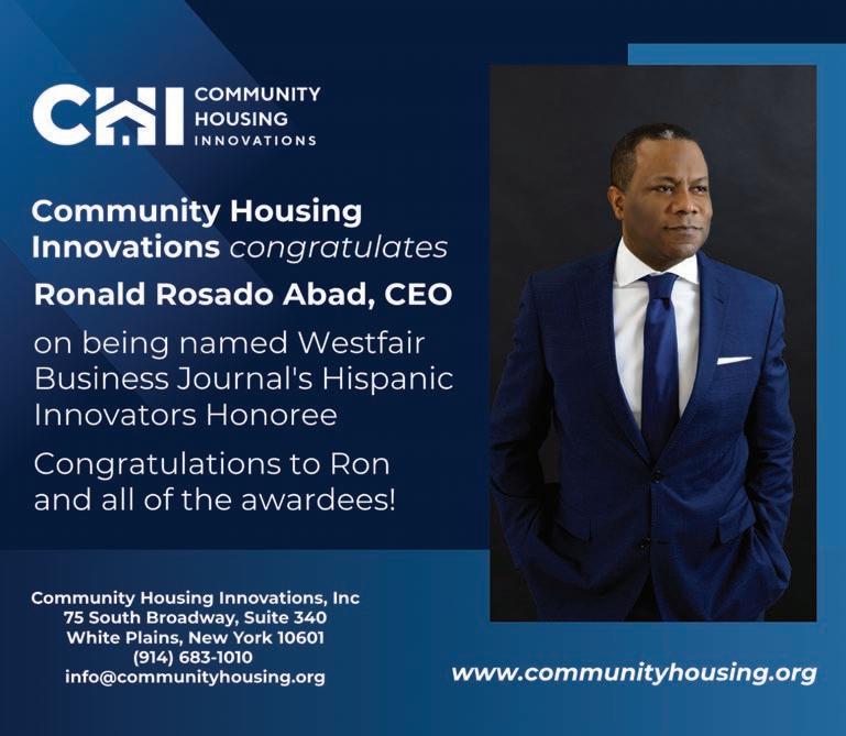 Ron Abad is a seasoned nonprofit and government executive with 30 years of leadership experience in housing and community-based health services. A dynamic speaker and advocate, he is driven by a mission to help individuals and families move from poverty to self-su ciency. Abad is the chief executive o cer of Community Housing Innovations, Inc. (CHI), a major nonprofit housing provider with an operating budget of nearly $125 million and about 700 employees. CHI operates homeless shelters, supportive and a ordable housing, homeownership programs and financial literacy services for thousands of families across Westchester, Long Island, the Hudson Valley and New York City. Before joining CHI, Abad served as senior vice president for Acacia Network Housing, overseeing shelters for more than 4,000 individuals and families. He also served as chief operating o cer of Urban Pathways, managing supportive housing programs, operations, facilities and crisis response. Earlier, he spent seven years as assistant commissioner for the New York City Department of Homeless Services, overseeing shelter capacity and development for families with children. He holds a Juris Doctor from Boston College Law School and a bachelor’s