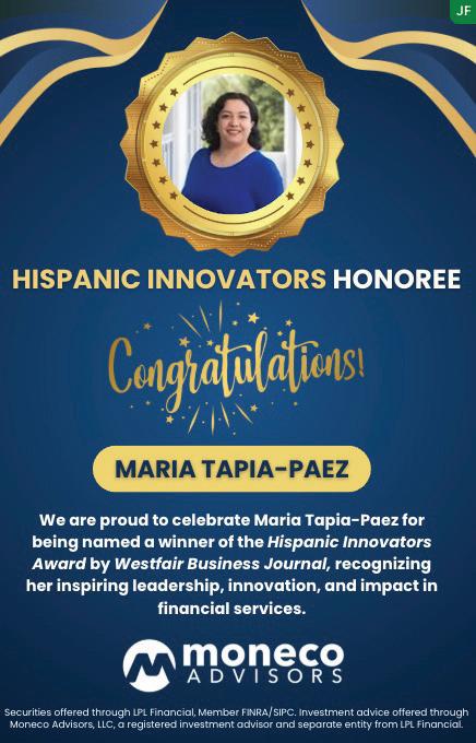 Maria joined Moneco Advisors in 2024 as client services manager, bringing more than a decade of experience in financial services and a strong background in process and workflow management within the medical field. She quickly became a driving force within the firm, energized by the opportunity to serve clients and collaborate with a team of dedicated professionals. Her unique perspective and commitment to excellence have helped streamline operations and elevate the client experience. Originally from Quito, Ecuador, Maria draws on her cultural heritage and love of creativity, exploration and innovation to bring fresh thinking to every challenge. A graduate of the City College of New York, she is a lifelong learner with a passion for personal growth and the development of those around her. Maria is motivated by a simple but powerful mission: “Helping clients pursue their financial goals and guiding them toward a secure future is what drives me. I’m dedicated to removing obstacles so our advisory team can focus on what truly matters—delivering personalized client care and making a real di erence.” Her impact extends beyond the o ce. Earlier this year, Maria and a colleague volunteered at Nourish Bridgeport, supporting programs such as the Super Food Pantry, Baby Center