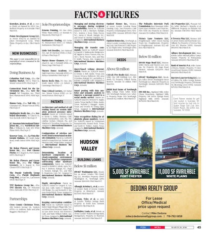 159-167 Washington LLC, Brooklyn. Seller: 159-167 Washington Street Newburgh LLC, Blauvelt. Property: in Newburgh. Amount: $287,000. Filed March 17. 198 SSR Inc., Highland Mills. Seller: Chana Rosenberg, Highland Mills. Property: 198 Seven Springs Road, Highland Mills 10930. Amount: $275,000. Filed March 18.