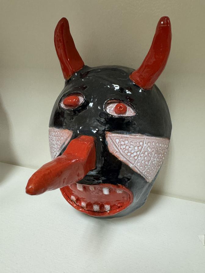 Yohara, Savannah and other Upper School students have been working on a “monster” collaboration with the Pre-Kindergarten students at the Primary School. The Pre-K students drew a monster from their imagination, and the Upper School students were tasked with bringing their creations to life in the form of a clay sculpture. Yohara is pictured with her clay sculpture, which has been built by hand. We caught her as she meticulously applied underglaze to the piece in preparation for its second and final firing in the kiln.