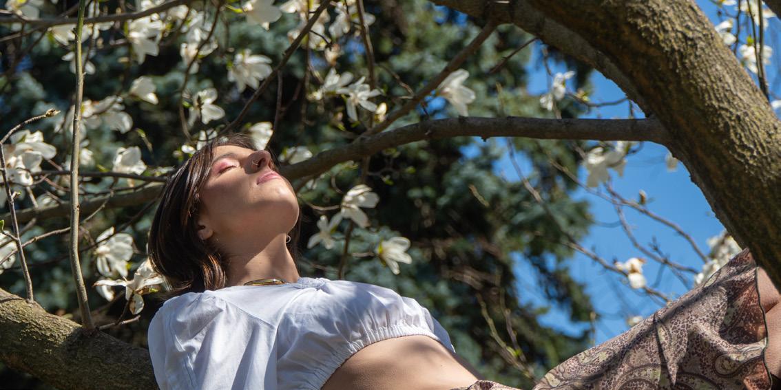 So much in life is fleeting—cherry blossoms in the Spring, orange skies in a beautiful sunset, blooming dandelions before a gust of wind. In the Fable shoot, we aim to capture this ephemeral beauty. The model dons two stunning gowns by Haverford College’s Maxine Roeder, glowing among flower petals and golden hues.