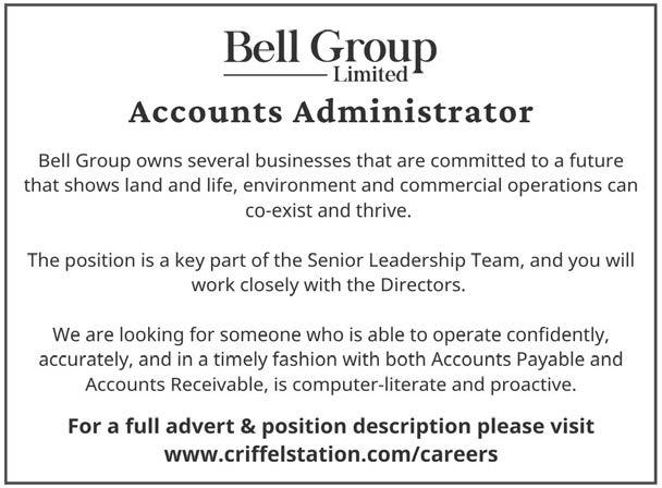 Upper Clutha Messenger 18th January 2023 Big Fig Wanaka FRONT OF HOUSE MANAGER Natural leaders & systems-lovers, apply here! We’re looking for a Front of House Manager who knows how to lead a team, ace our excellent systems and train people to perfection. The base pay is $29/hour with the opportunity to add to that by up to $9/hour with bonuses. You’ll need to have a current Duty Manager’s Certificate (or be able to get one). At Big Fig, we’re passionate about real food, sustainability, our community and bringing out the best in people. If this sounds like you, we’d love to chat. Email wanaka@bigfig.co.nz Contact us for a free quotation or some friendly advice Andrew Hennigan - 027 5166 690 info@treescompany.co.nz / WanakaArborist treescompany.co.nz Tree Pruning Tree Removal Bracing & support systems Hedge trimming Wood chipping QUALIFIED AND INSURED / 15 YEARS EXPERIENCE