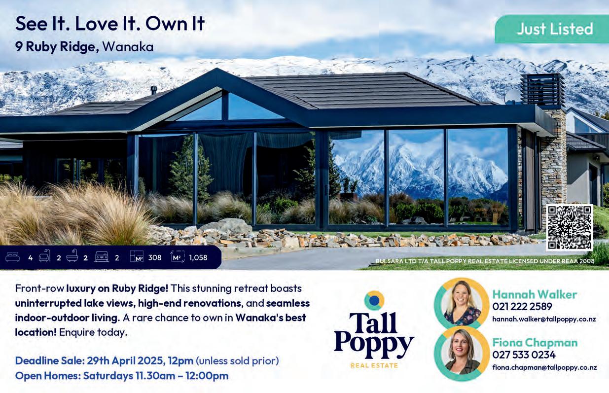 95 Plantation Road, Wanaka1.15 - 1.45pmSat 24 MayDeadline 12/06