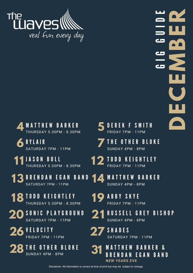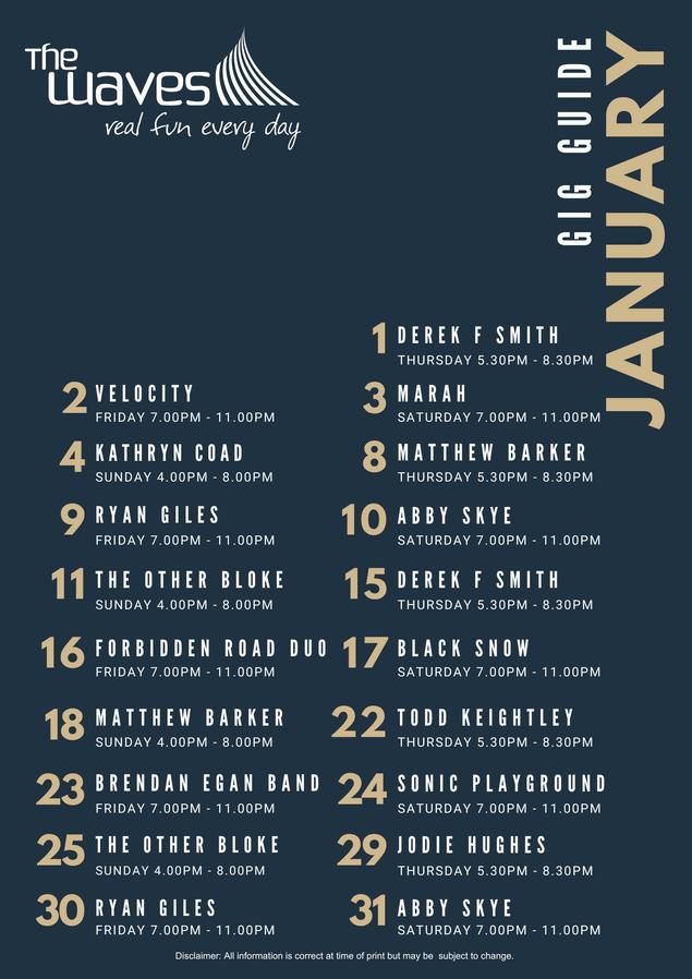 JoinusthisAustraliaDayforafun-filledcelebrationat TheWaves!EnjoyadeliciousrangeofAussiethemed Bistrospecials,cashgiveaways,plusliveentertainment throughoutthedaytokeepthefestivespiritgoing.