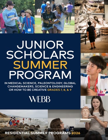 Applications and additional information can be found on our website at www.webb.org/summer. Priority application deadline is March 15, with rolling applications accepted after that date as space allows. $50 nonrefundable application fee is required. Limited need-based financial aid is available.