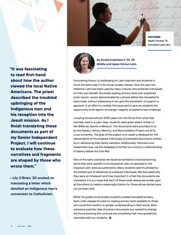By Emelie Inderhees P ’33 ’35 Middle and Upper School Latin