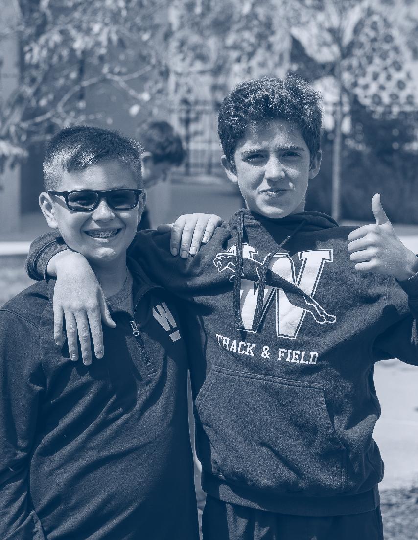 With one year of middle school complete, Wellington’s 6th graders continue to develop their academic, social-emotional, and character skills through a balanced and engaging program. 6th grade coursework includes: language arts, mathematics, science, social studies, French, music, art, and physical education. In addition, students can select from a variety of trimester classes based on personal interest or budding passion. Schoolissued Chromebooks allow students to access a myriad of technologies in the classroom as they cultivate critical digital literacy skills and responsibility. As 6th graders, students have the opportunity to participate in interscholastic sports, the annual middle school play, robotics, and cybersecurity. A beloved 6th grade curricular highlight is a threeday experiential learning field trip to Cuyahoga Valley National Park where students explore scientific themes in the watershed and woods. At school, the Advisory program serves as a constant throughout the year, fostering authentic connections among peers and giving each student a sense of feeling known and affirmed.