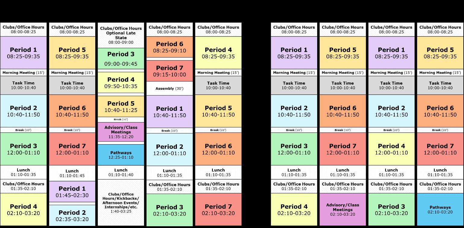 • Student autonomy and work periods are protected by Task Time. During these periods, all teachers are