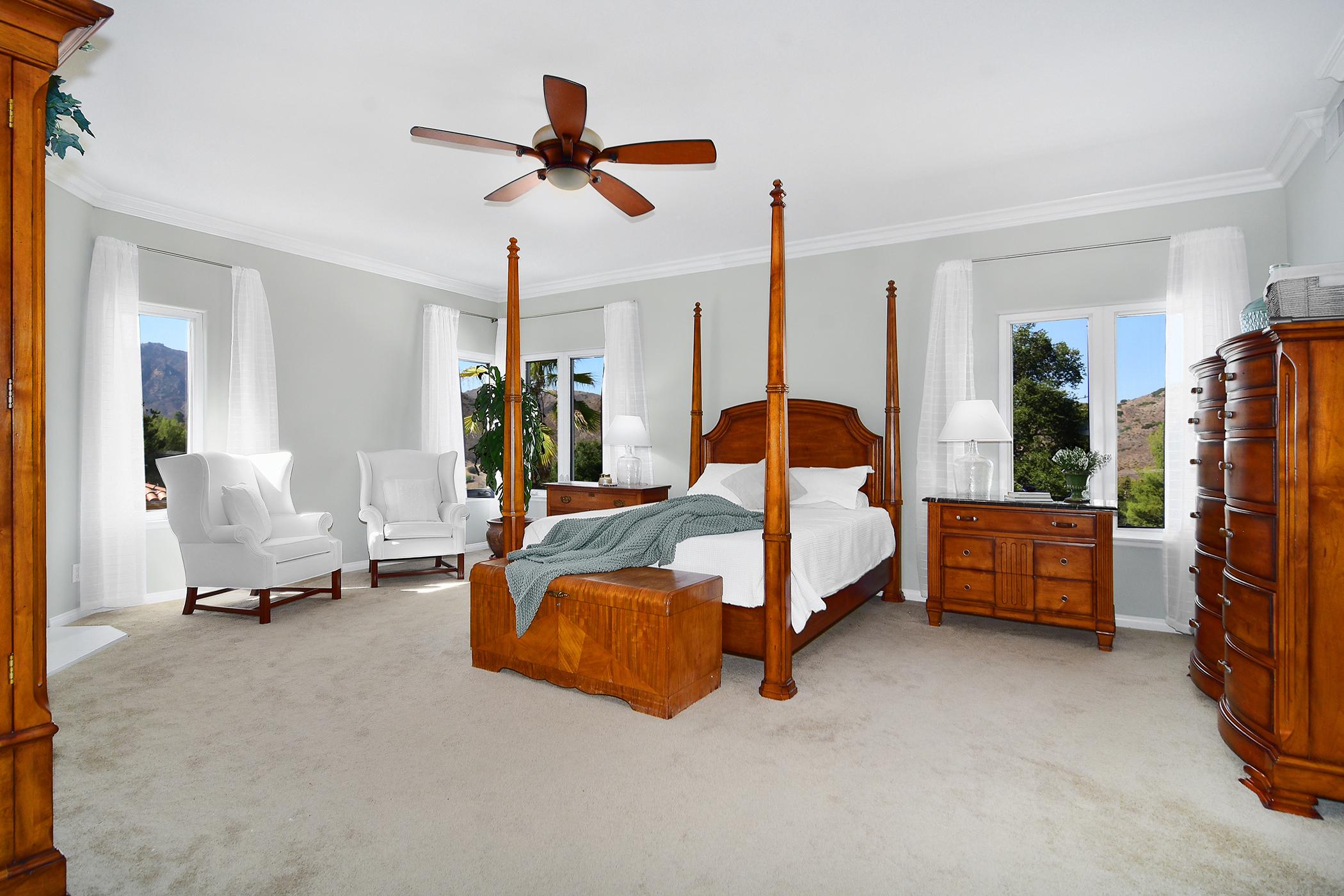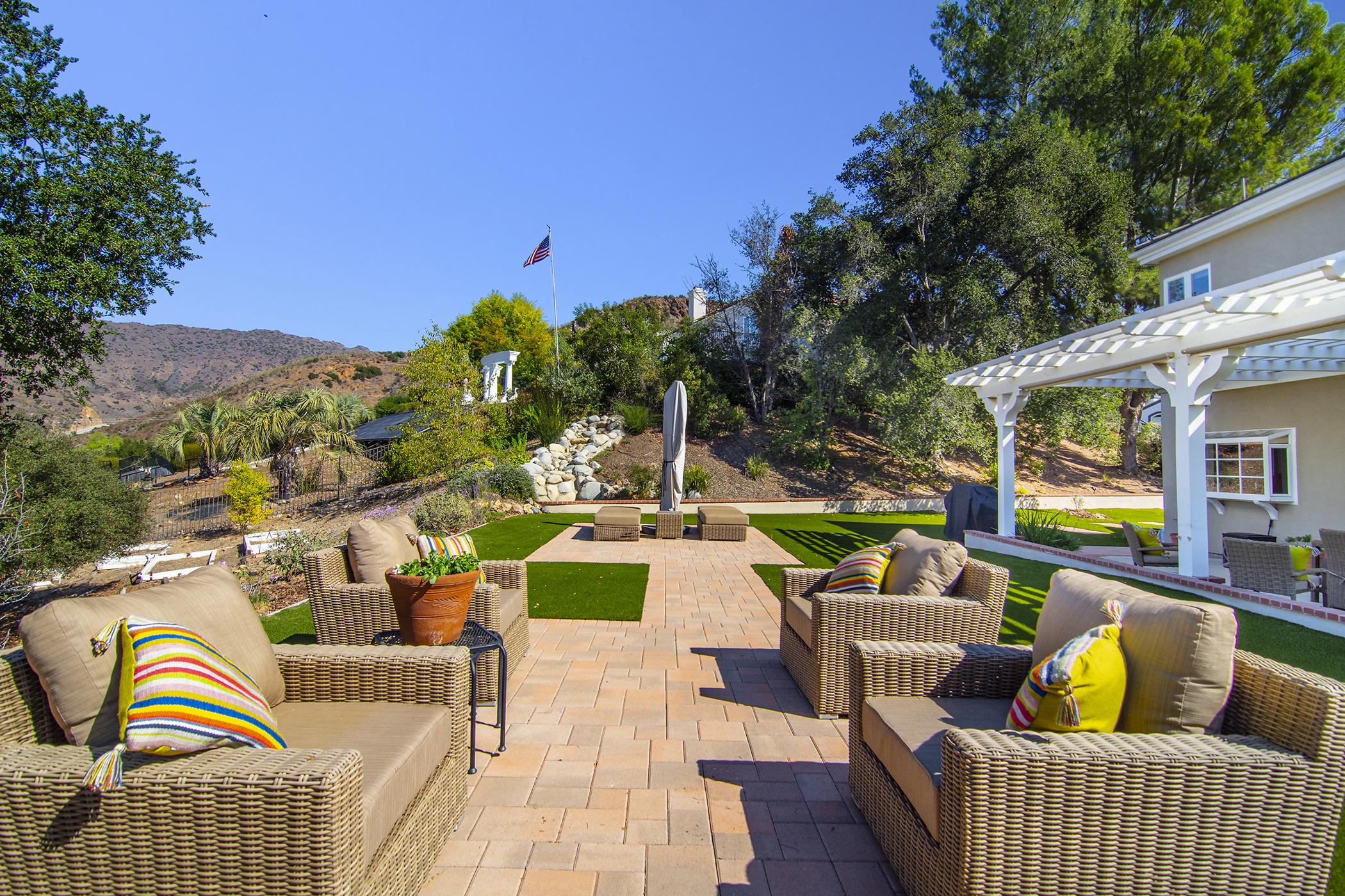 Enjoy breathtaking Views of the Santa Monica Mountains in this stunning 3,701 sq ft home located near Malibou Lake. An entertainer’s dream with an open two story floor plan which flows outdoors to a spacious yard with a pergola, outdoor dining and seating to enjoy the mountainous views. The remodeled kitchen opens into a spacious and cozy family room and conveniently connects to a formal dining area. Adjacent to the family room is a private downstairs bedroom with ensuite bathroom. The grand staircase leads to an open loft perfect for a library or small office work station. The oversized, upstairs master suite takes advantage of sunset canyon views. The 2 additional upstairs bedrooms sit across from the master suite and look out to the rolling hills. The home is in walking distance to The Old Place and just minutes from Malibu and the 101 FWY.