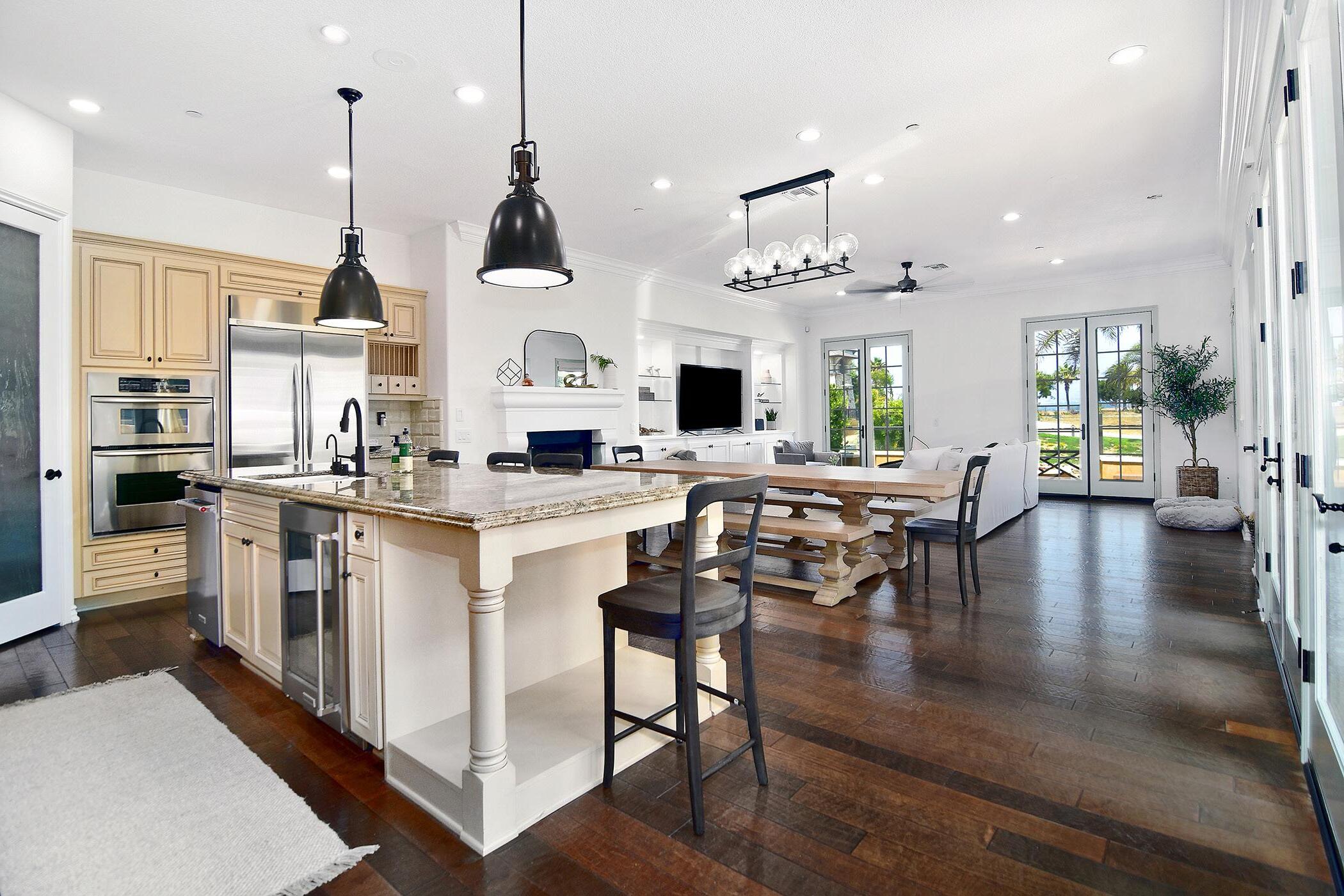 Experience luxurious waterfront living in this stunning 4-bedroom, 3-bathroom home situated within the prestigious gated community of Seabridge, nestled in the Channel Islands harbor. This residence is a testament to coastal elegance, with meticulous upgrades and decorator touches throughout. Spread across two levels, the main floor features an open layout designed for seamless entertaining. The gourmet kitchen boasts an 8-burner stove, stainless steel appliances, dual dishwashers, a spacious granite countertop, and elegant light cabinets. Custom-built wall units, gleaming hardwood floors, and bespoke window treatments add sophistication to the space. Step outside to a welcoming outdoor patio complete with a gourmet kitchen, perfect for hosting summer barbecues while enjoying serene waterfront views. A private 35' dock awaits just beyond, offering effortless access to the tranquil waters of the harbor. Upstairs, the opulent Master Suite awaits, featuring a spectacular Master Bath adorned with lavish tilework and a large jacuzzi tub—ideal for unwinding after a long day. Two additional bedrooms upstairs, one with captivating water views, share a lavishly appointed bathroom.
