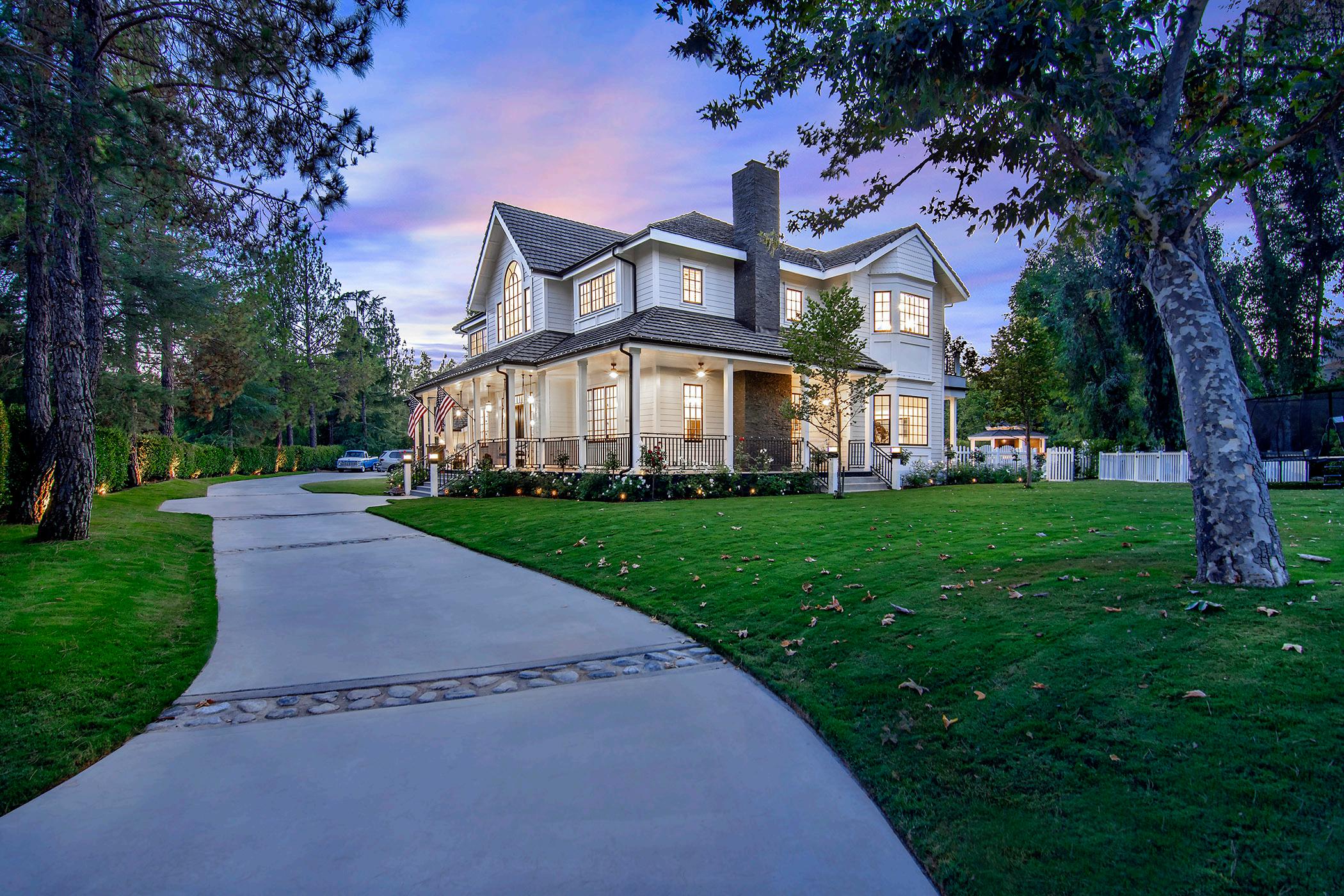 Experience luxury and functionality in this 7,122 sq ft modern industrial farmhouse by Sexton Farms. Situated on 1.5 acres, this 5-bedroom, 7-bathroom estate blends modern amenities with timeless design, featuring the potential for two ADUs. Inside, discover wide plank oak flooring, vaulted ceilings, and a wraparound porch for year-round outdoor enjoyment. The chef’s kitchen boasts quartzite countertops, a Sub-Zero fridge, an 8-burner Blue Star stove, dual ovens, dishwashers, and a walk-in pantry. A butler’s pantry with custom butcher block countertops adds extra storage and prep space. The oversized primary suite includes a morning kitchen, fireplace, private balcony, dual walk-in closets, and a spa-like bathroom with a freestanding tub and steam shower. Entertainment options include a state-of-the-art soundproof movie theater, a concession center, and an adjacent den/playroom. The entertainer’s yard features a pool with a waterslide, jacuzzi, firepit, sport court, putting green, outdoor kitchen, and an organic garden. Additional amenities include a mudroom with custom storage, dual floor laundry, and a dog shower. Enjoy stunning Santa Monica Mountain views and a Brilliant smart home system for seamless control. This property offers luxury living and functional design in a coveted location. Don’t miss the opportunity to make this exceptional home your own.
