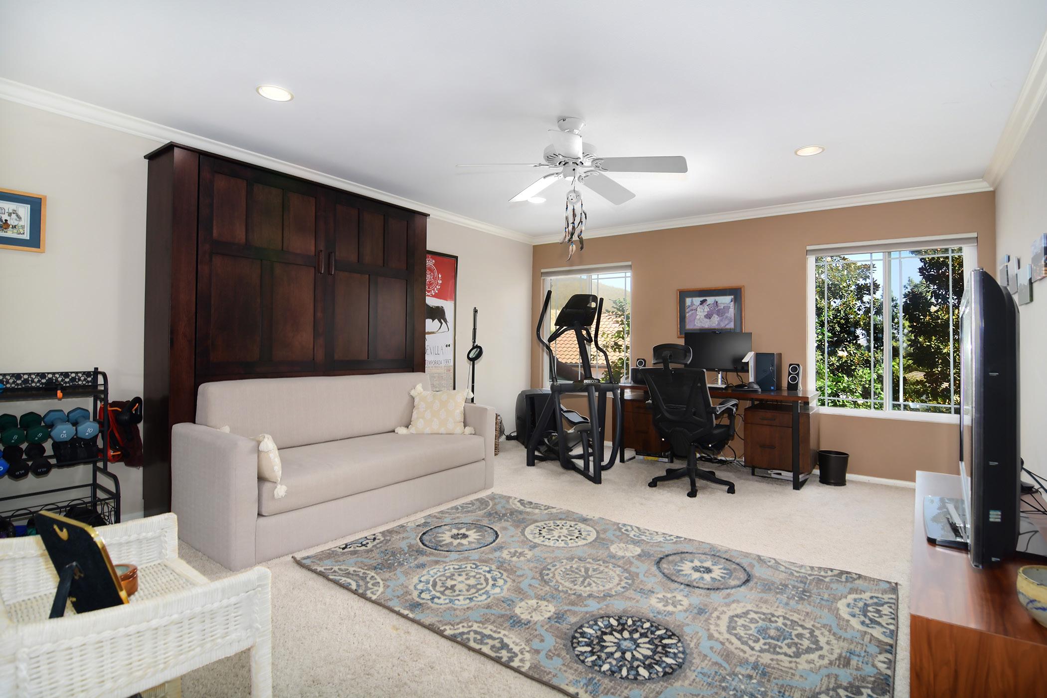 Nestled at the top of a quiet cul-de-sac in the highly sought-after Morrison Ranch Estates, this luxurious 4-bedroom, 3-bathroom home offers a private oasis with stunning mountain views. Spanning 3,185 sq. ft. on nearly half an acre, the property boasts a beautifully landscaped, drought-tolerant yard with a spacious 3-car garage and large driveway. The living spaces are large, open, and bright, with breathtaking views of the surrounding hills and the resort-style backyard, perfect for seamless indoor-outdoor living and entertainment. The family room is a true showstopper, featuring hardwood floors, custom cabinetry, and a resurfaced fireplace. The fully renovated kitchen is a chef’s dream, equipped with a Wolf range, double ovens, a center island, and custom cabinetry offering extensive storage. This kitchen is perfect for cooking and hosting in style. Step outside into your private paradise, complete with a putting green, organic garden, and outdoor BBQ, ideal for gatherings and relaxation. The home is energy-efficient with paid-off solar panels. Upstairs, you’ll find three spacious bedrooms, including the reimagined primary suite, which boasts a cozy sitting area by the fireplace, his-and-hers walk-in closets, and a spa-like bathroom. Downstairs, an oversized bedroom with an upgraded bathroom and walk-in shower is perfect for guests or a home office. This home combines luxury, comfort, and sustainability in one of the most desirable locations. Make this oasis your own!