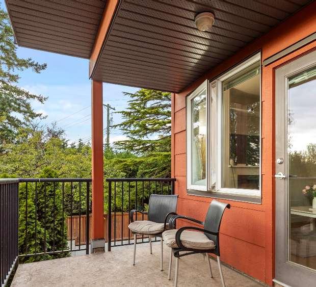 Bright corner unit at the Brix! Extraordinary opportunity to live in one of the most sought-after areas, known for its beauty and abundance of parks. Multiple windows invite in the natural light, enhanced by the 9-foot ceilings. The spacious kitchen features stunning Macassar Ebony cabinetry, quartz countertops, and ample storage, flowing seamlessly into a dining area. Unwind in the living room, complete with an electric fireplace for added ambiance. Step outside onto the large patio, perfect for BBQs. The bedrooms are on opposite ends, ideal for roommates, a home office, or other arrangements. The primary captures the evening light with a large closet. The bathroom offers plenty of under-sink storage and a deep tub/shower combo. Additional features: in-suite laundry, designated parking, bike rack, and storage. The Brix is a well-managed, pet (max 2 dogs or 1 cat and 1 dog) and family-friendly building. Steps from Saanich Centre, bus routes, UVIC & more.