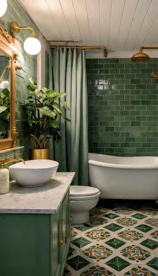 For a bathroom that makes a statement, deep green is the perfect choice. Shades like forest green, emerald, or olive create a rich, luxurious feel that instantly elevates the space. This shade is great for modern luxury bathrooms, vintage-inspired spaces, or minimalist designs that need a bold accent.