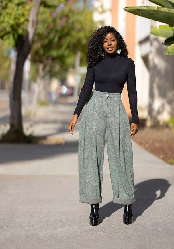 Tucking your turtleneck into high-waisted pants or skirts instantly gives you a smart and put-together look. It defines your waistline and adds shape to your outfit. You can wear a slim-fit turtleneck with high-waisted jeans for a casual outing, or opt for wide-leg pants for a more stylish look. For a feminine twist, pair it with a midi or pleated skirt and ankle boots. This look is both chic and comfortable, making it perfect for brunch, dates, or even a casual day at work.