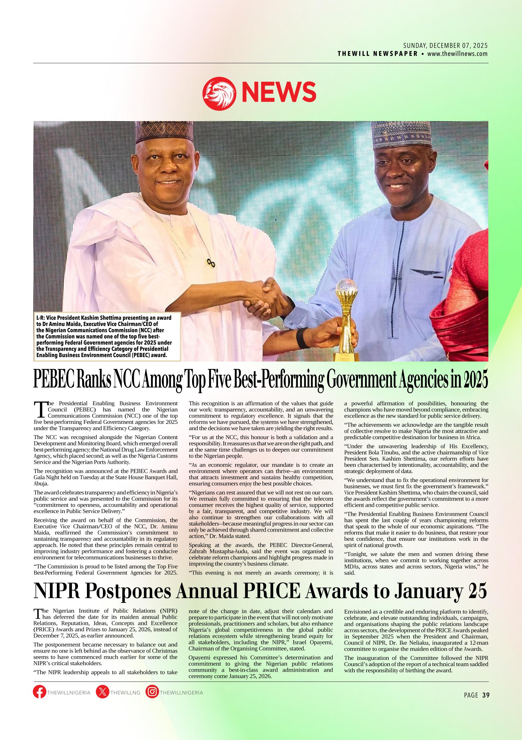 THEWILL NEWSPAPER DECEMBER 07, 2025
