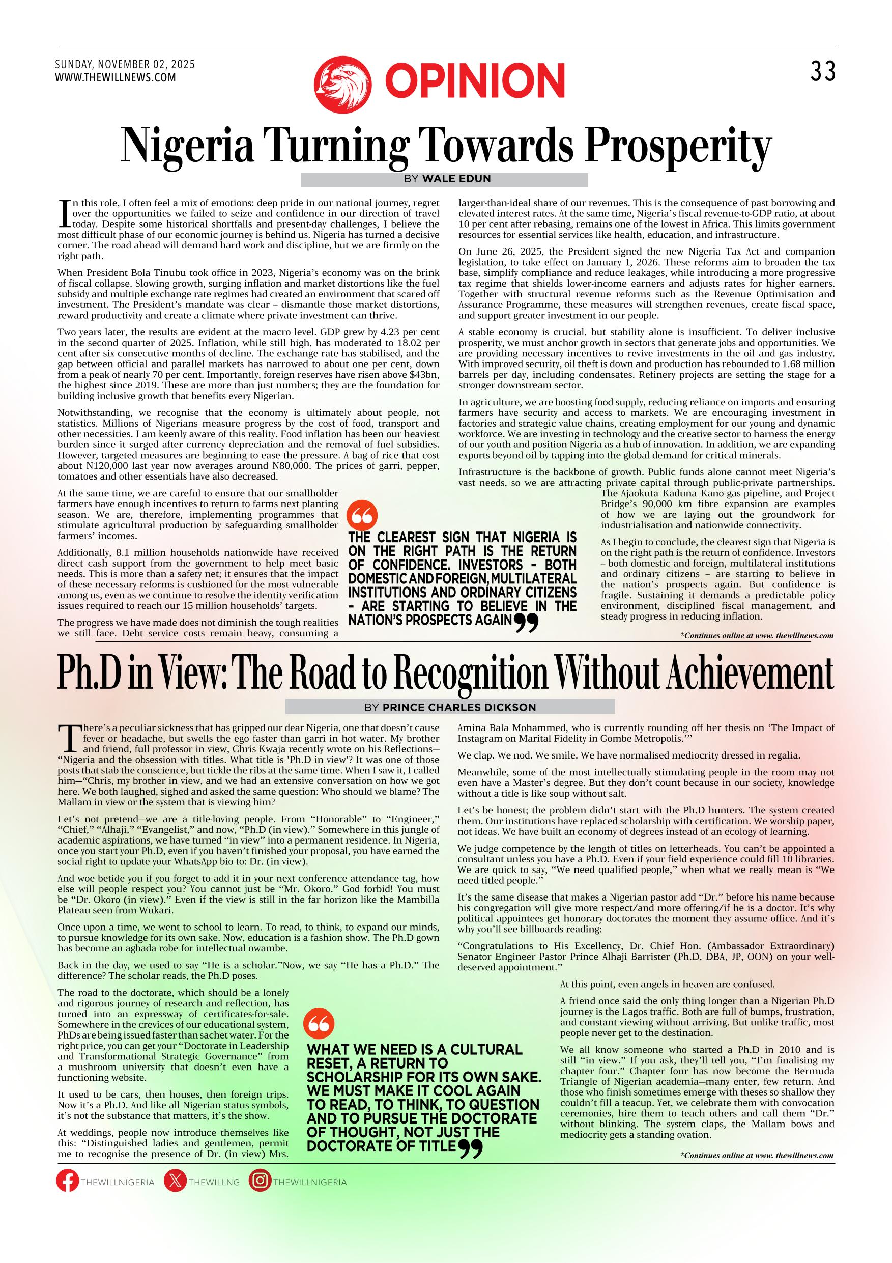 THEWILL NEWSPAPER SUNDAY NOVEMBER O2, 2025
