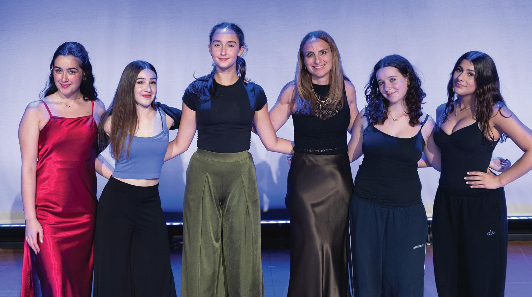 Alumni Dancers Performing at The Willows shown with MARISSA WEISS, Dance Teacher L to R: LAUREN POMERANTZ ’21, ARDEN MEHTA ’24, EDEN ROTHENBERG ’23, MARISSA WEISS, PHOEBE WOLFE-CARLIN ’24, and DANI AZIZ ’24.