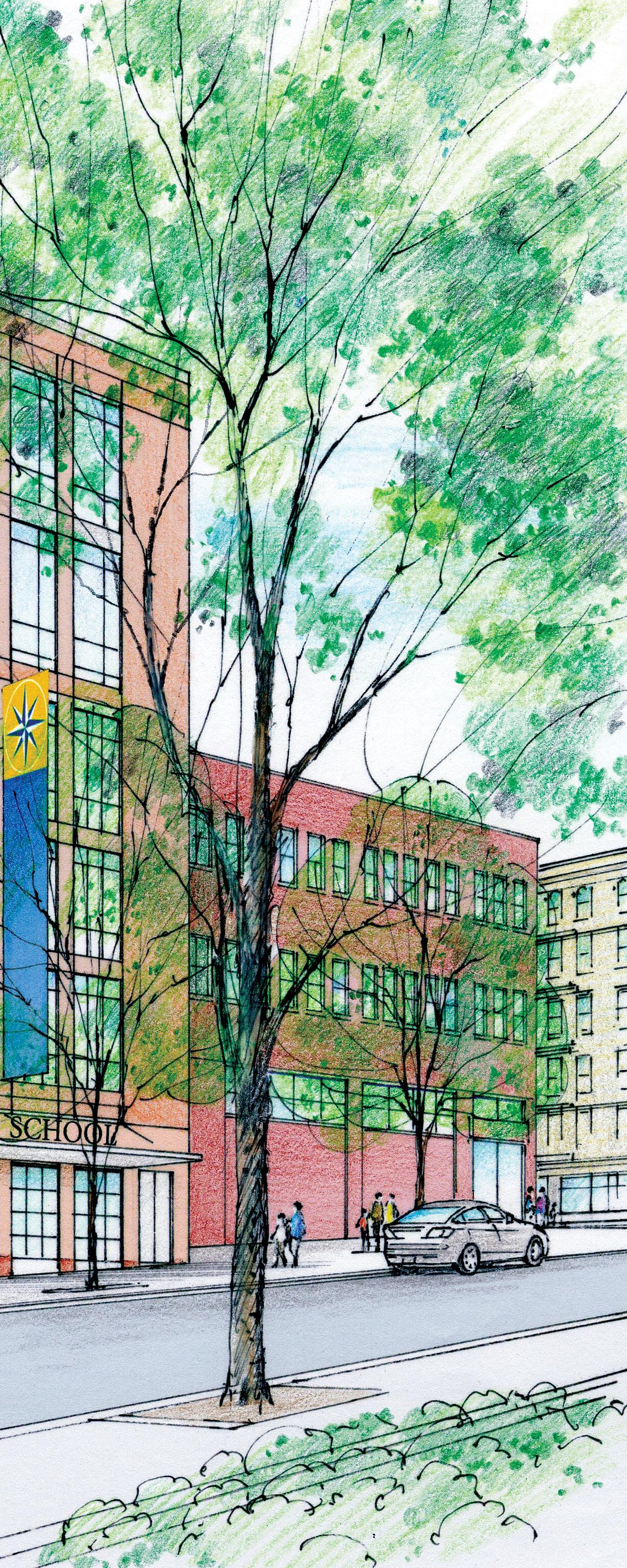 Building an annex at WMS to house teacher training spaces was critical to a successful expansion of the School; however, the process did not come without its hiccups. Salzer recalls feeling grateful for the expertise of fellow board member Joe Lorono, a well-known builder in Westchester. “We were getting ridiculously high quotes to tear down the old dormitory building at the middle school. Joe said he could bring his bulldozer and handle the demolition himself.” By 2012, the Judith C. Hochman Building at WMS had been completed, including a lecture hall, classroom space, administrative offices, and the state-of-the-art Maureen Sweeney Auditorium. (Sweeney led the admissions team for many years and, critically, throughout the transition to opening in New York City.)