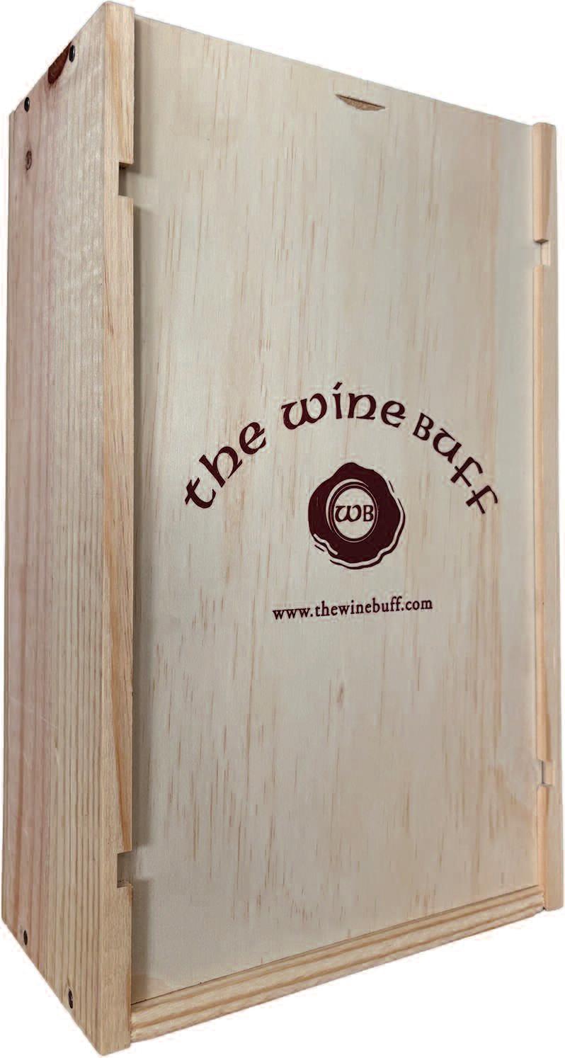 All wines in our 2 Bottle Branded Gift Card Boxes can be supplied in our Wine Buff branded Gift Pine boxes.