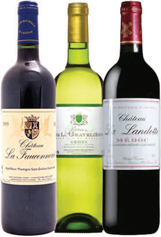 A typical Bordeaux blend of Merlot/Cabernet and a crisp fruit driven Sauvignon Blanc.
