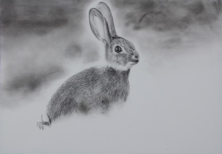 Beneath the porch lights, laughing we talked to a fat fuzzy rabbit in a cage feeding him baby carrots as we pet his floppy black ears.