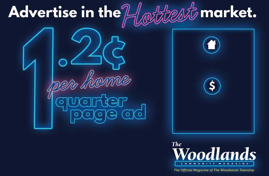The Woodlands Community Magazine is a monthly publication of The Woodlands Township, in partnership with Champions Printing & Publishing, Inc. It is printed and distributed free of charge to residents of The Woodlands. The printing and distribution of The Woodlands Community Magazine are supported entirely by advertising revenue. Please patronize the advertisers whenever possible, and tell them you saw their ad in this magazine and appreciate their support.