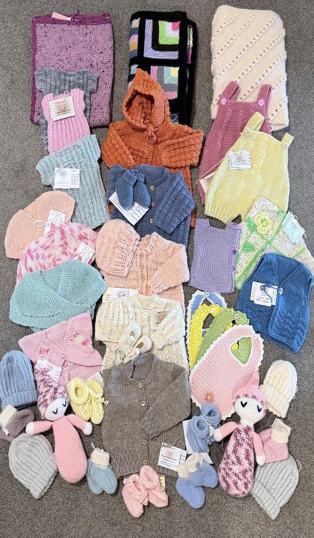 The primary goal of the Pegasus Town Knitting Group is to knit for the premature and newborn babies of Christchurch’s Neonatal Unit or the Maternity Wards of Christchurch and Rangiora Hospitals - whether it be blankets, hats, jumpers, cardigans, vests or singlets This year over 1000 items have been donated to Christchurch babies. Many other projects have also been tackled including beanies for Men’s and Women’s Night Shelters, mitts and hot water bottle covers for children in temporary accommodation at campgrounds, larger child items for new mum and young family support charities such as Rachel’s House in Rangiora, catnip toys for our furry friends at Kitty Kingdom, twiddles muffs and toys for emotional support situations as in dementia homes or for the neurodiverse, and knitted toys for other charities such as Salvation Army or Social Support Agencies to distribute to their families in need Over the year, a further 900 items were distributed to these agencies, and these have been a satisfying way to utilise donated yarns not suitable for babies.