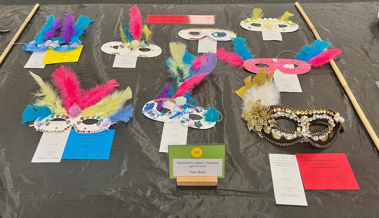 following caterpillar on a leaf, mask, decorated biscuit and handmade card as well as a chance to complete the colouring competition, always popular and over-subscribed and a great way to spend a wet school holiday day. The show is run by the committee,