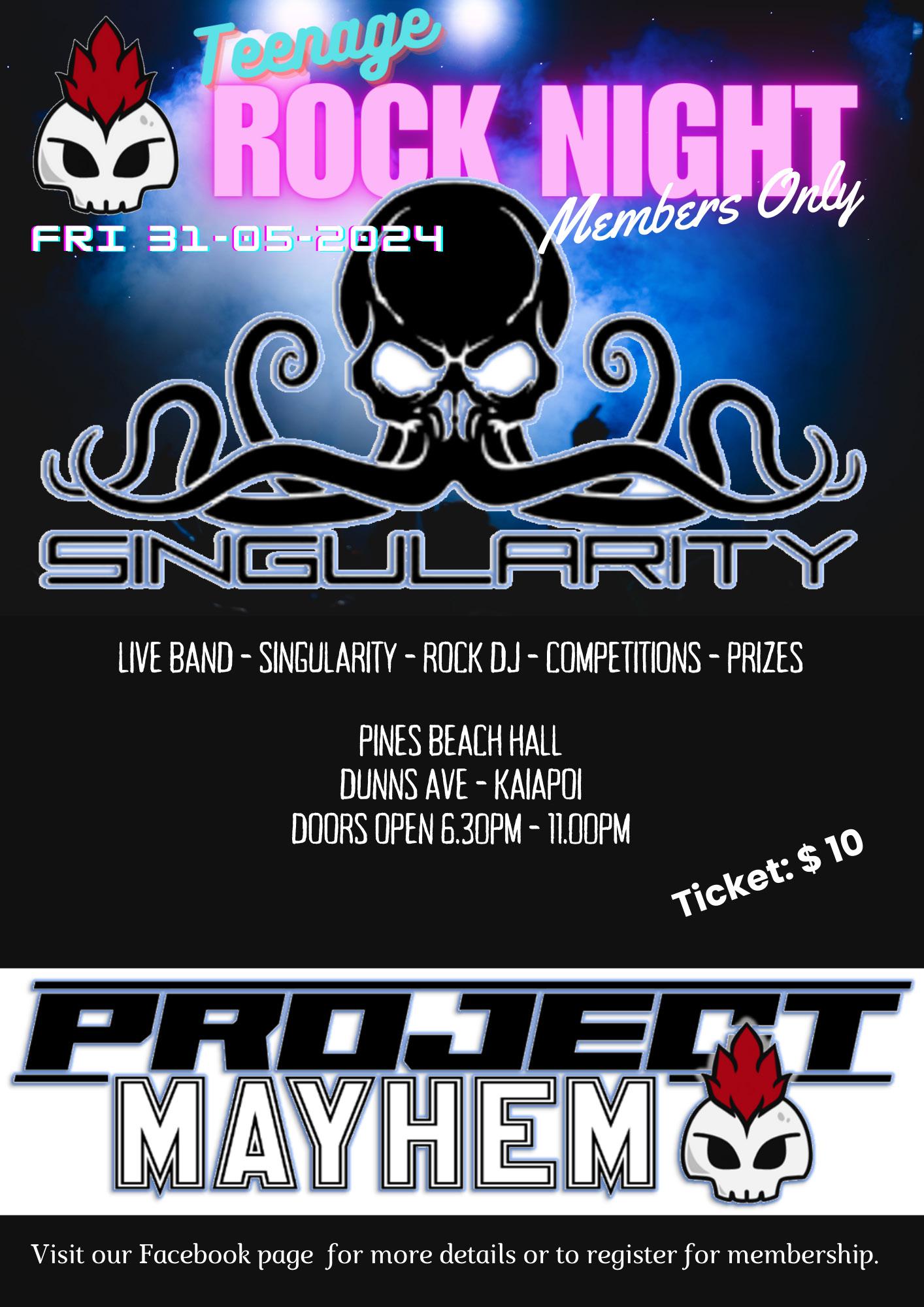 There are very few forums in our region where teens can come together and socialise and that’s where Project Mayhem comes in to its own. Kev added, “We are inviting the youth of our community to rally together at these events and also interested in hearing from other rock bands looking to play at one of our events”.