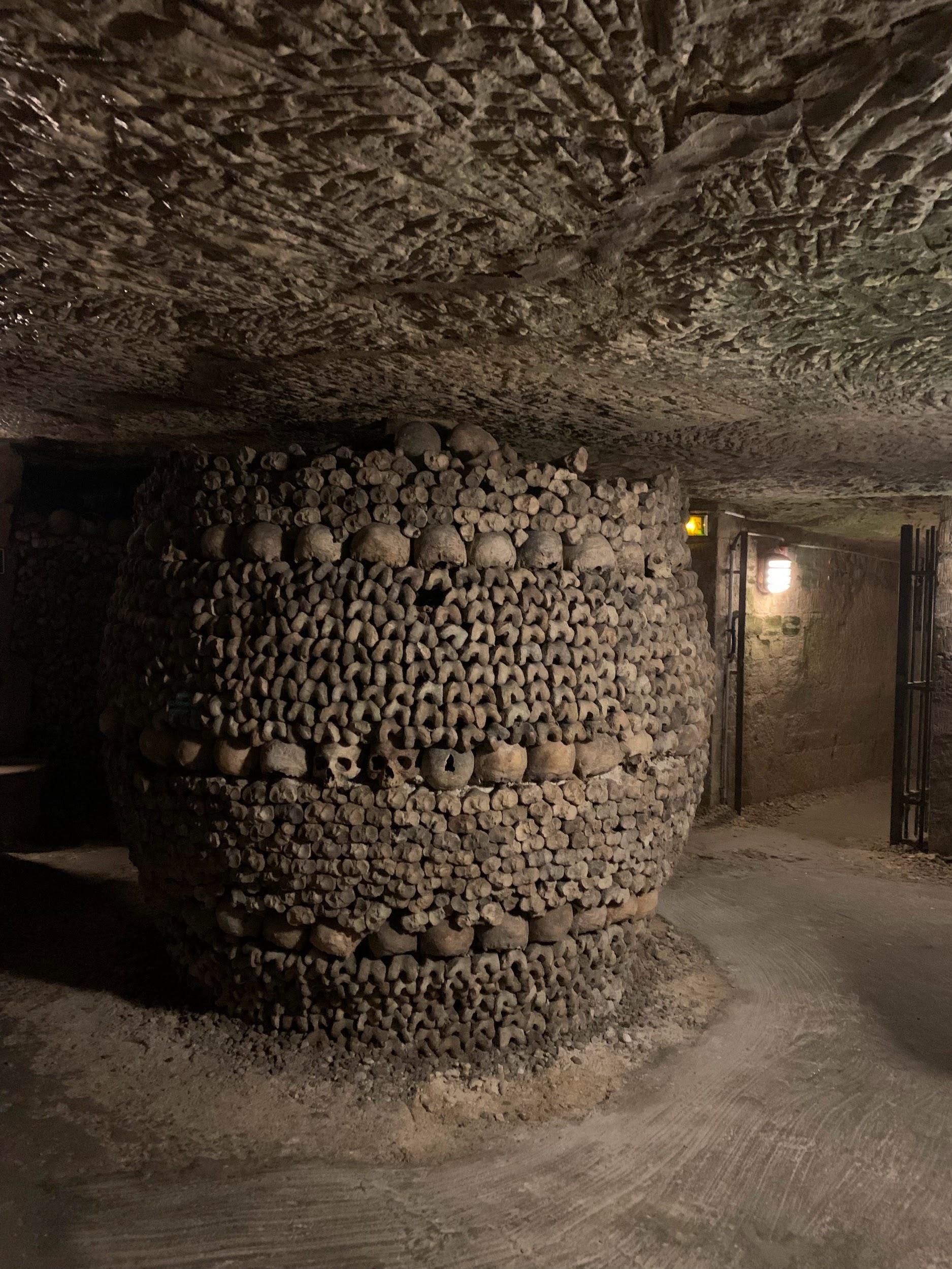 OnSaturday,unfortunately,ourtimeinPariswascomingtoanend, butwehadonemoredayoffun.Inthemorning,wewentto Montmartre,aneighborhoodknownforitsstreetartists,andThe BasiliqueduSacreCoeur,whichwasourfirststop.Weadmired stainedglass,alargemosaicofJesus,andmanyotherthingsbefore leavingtodosomeshopping.InMontmartre,severalstudentsgot portraitsdone,andallofusboughtmatchingParissweatshirts.For ourfinalstop,wesplitintotwogroups,onewenttoTheCatacombs andonewenttoCiemetairePereLachaise,whichhasthegravesof manyfamousartists,musicians,andauthors.OurdinneratAstaire onthelastnightwasveryfancy,andwehadmanyFrenchdelicacies likeescargotandfrog’slegs.