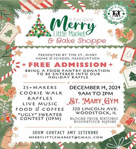 The McHenry County Historical Society’s Museum, located at 6422 Main St. in Union, is open year-round. Regular museum hours are Tuesday - Friday from 1 to 4 p.m. and Saturdays from 11 a.m. to 4 p.m. Stop by and enjoy a cozy “Christmas Cafe and Holiday Open House” at the museum on Dec. 7 from 9 a.m. to 4 p.m. Admission is free and attendees can “Warm Up to History” with cocoa, coffee, carolers, and more! Visit mchenrycountyhistory.org for more information.