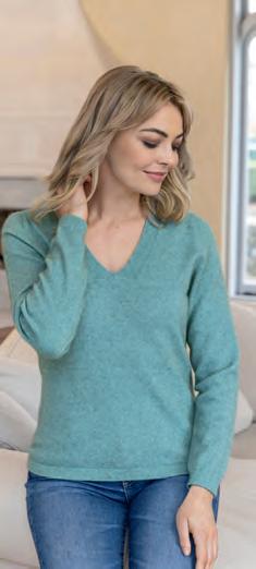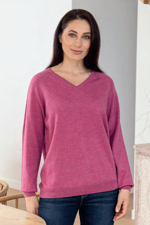 1396 VEE NECK SWEATER • REGULAR FIT • Plain classic V neck. Magnolia worn with 843 Neck Warmer Page 78. 20% Possum, 70% Superfine Merino, 10% Silk. Berry • Black • Charcoal • Cornflower • Magnolia • Topaz XS • S • M • L • XL • 2XL $199.00