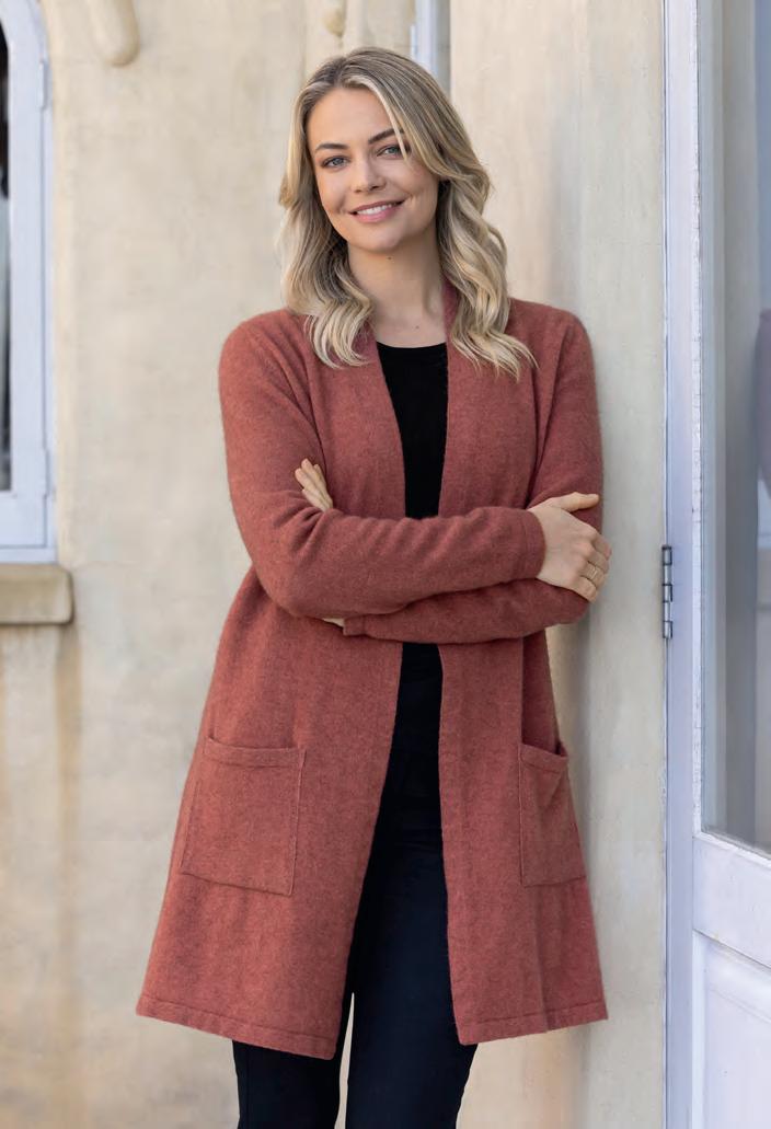 Welcome to our Winter 2024 Look Book. We are still proudly producing all our garments in New Zealand. This year we have focused on bringing you a well curated range of styles and colours. You can opt for oversized silhouettes to stay fashionably snug this winter, or choose from our more classic styles. The colour palette ranges from cobalt, sand and rich reds , to the softer muted shades of sage, magnolia and rosewood. This year we have added to our range of 40% possum styles to bring you more choice in these warmer pieces
