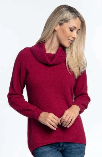NEW STYLE Rolled hem and neckline. 20% Possum, 70% Superfine Merino, 10% Silk.