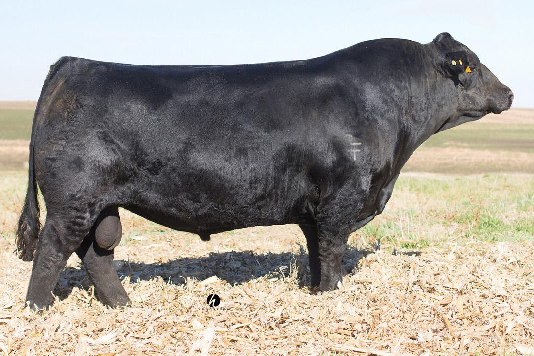 exhibits a stylish phenotype without forsaking performance. His progeny will be thick, deep ribbed, have a good look, and produce great end product. Element’s carcass EPDs are in Top 10%, 15% and 20% in the breed. DNA tested homozygous black, homozygous polled. (Photo courtesy ABS Global)