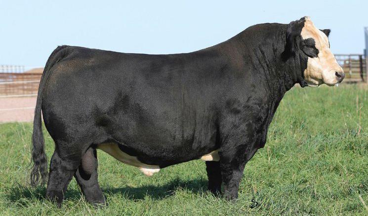 Sire to Lots 16 & 17, Duracell T52 is a Homozygous Black Homozygous Polled Simmental that delivers calving ease, eye appeal and body depth, with maternal traits.
