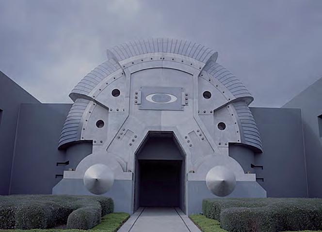 In what might be defined as the quintessential straight line between brand and architecture, the principles of Oakley brand architects and strategists are holistically defined in One Icon, the headquarters of the Oakley brand. A quick site study references their messaging "it’s a place of reinforced blast walls, product torture chambers and the padded cells of mad science. Oakley’s design bunker is where inventions are conceived, developed, perfected and manufactured. In addition to the hidden catacombs of research labs and