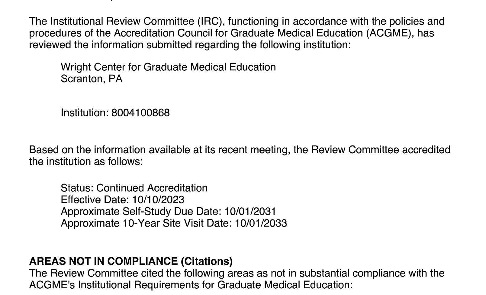 During fiscal year 2024, The Wright Center for Graduate Medical Education’s (TWCGME) operations were supported by direct funding from the U.S. Health Resources and Services Administration and the Veterans Administration, indirect funding from the Centers for Medicare & Medicaid Services through affiliation agreements with acute and inpatient rehabilitation hospitals, and shared savings from the Medicare Shared Savings Program through 10% ownership of the Keystone Accountable Care Organization. Of the $47.6 million in operating expenses incurred by TWCGME, $40.1 million, or 84%, was supported either directly or indirectly by federal funds.