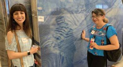 Designers Rose and Liz checking out Triton’s fun new slab colors!