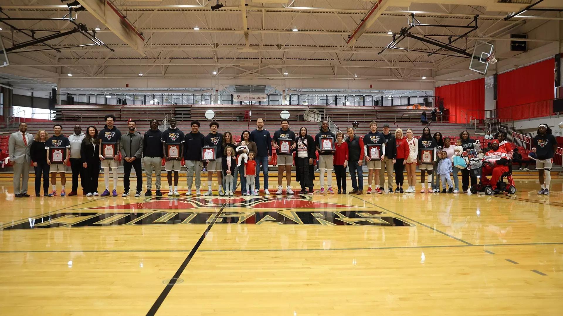 Saint Xavier honored seniors, Jerry Abushanab, Ashton Atwater, Mason Kibelkis, Davion Lawrence, Grant Martin, Ike Nwaobi, DJ Shelton, and Mekhi Wilson.