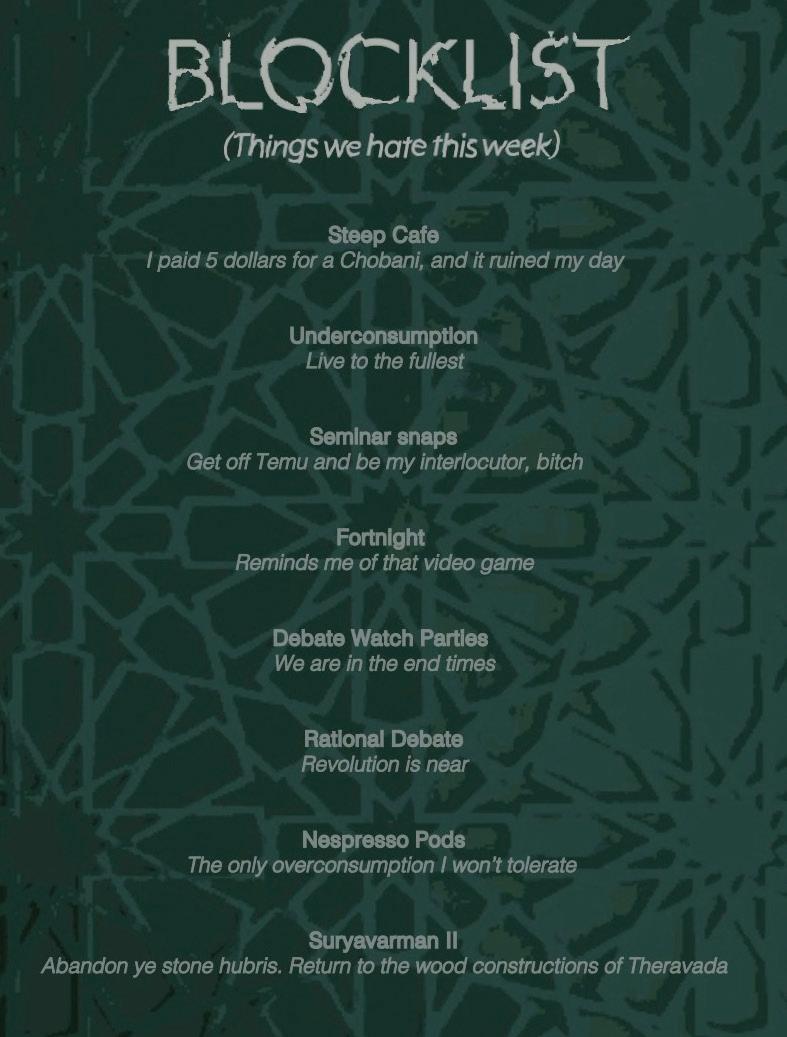 There was nothing to get. Maybe an energy of sorts, but brat’s ritual invocation eventually got to my head. Don’t get me wrong, I overused brat. Brat is that mean girl from middle school. We talk about her all the time, but we hate her. We act like we know every detail about her life, but she remains a mystery. This phenomenon isn’t limited to brat. Social media typification behaves like this. Think: “Barbenheimer,” “Demure,” and “Mindful.” These terms turned trends seem specific, but deep down, are vague: loaded with meaning yet meaningless. What is it about those words, so overused and oversaturated, that manage to trap us?